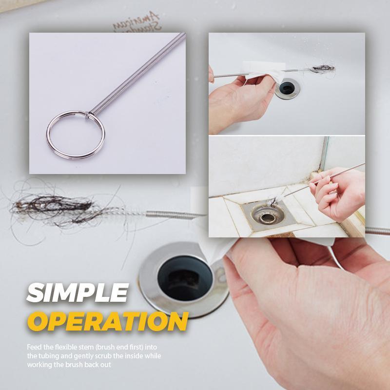 Steek het flexibele handvat (borsteluiteinde eerst) in de slang en schrob voorzichtig de binnenkant terwijl je de borstel naar buiten werkt. De flexibele maar stevige draad slingert moeiteloos door en gaat diep in elke afvoer.