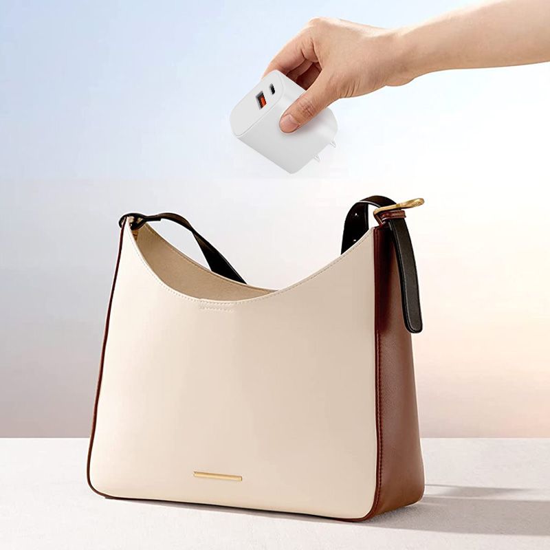PD+QC3.0 DUBBELE POORTEN: Uitgerust met twee uitvoerpoorten (USB + Type-C), kun je twee apparaten tegelijk opladen, waardoor je tijd bespaart en al je apparaten opgeladen zijn.